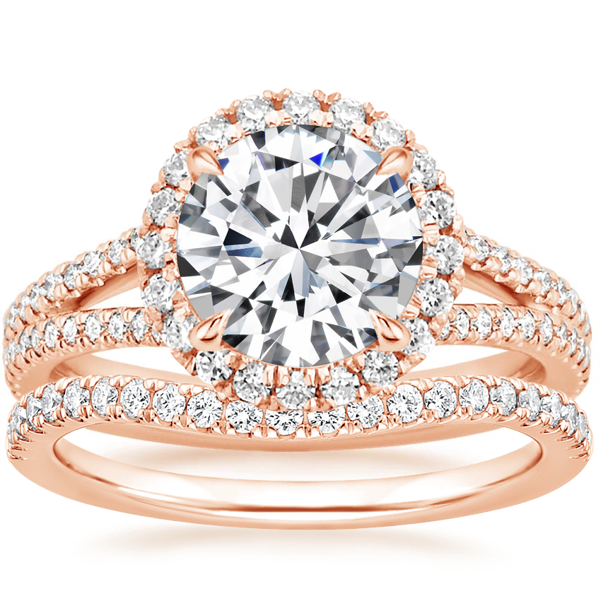 14K Rose Gold Fortuna Diamond Ring (1/2 ct. tw.) with Curved Ballad Diamond Ring (1/6 ct. tw.)
