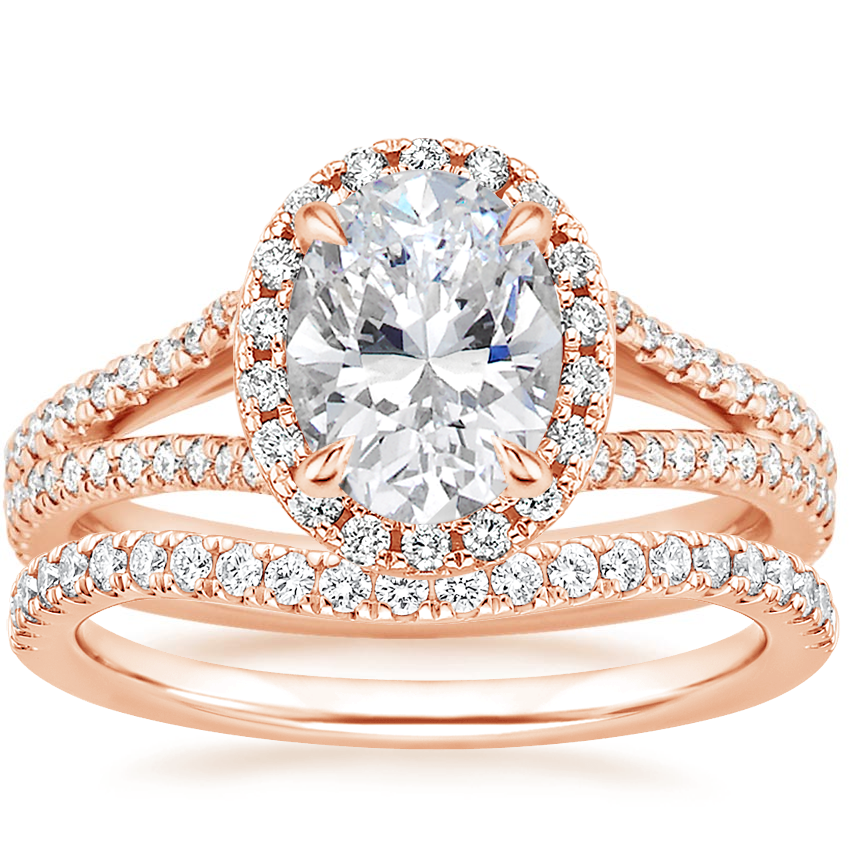 14K Rose Gold Fortuna Diamond Ring (1/2 ct. tw.) with Curved Ballad Diamond Ring (1/6 ct. tw.)