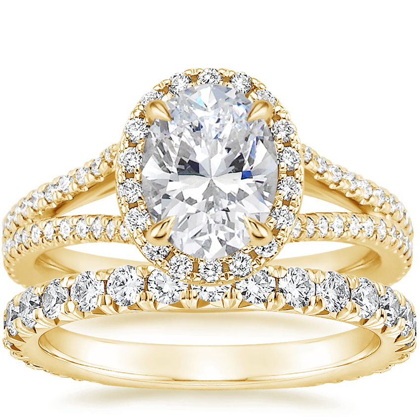 18K Yellow Gold Fortuna Diamond Ring (1/2 ct. tw.) with Luxe Sienna Diamond Ring (5/8 ct. tw.) with 1.51 Carat Oval Diamond