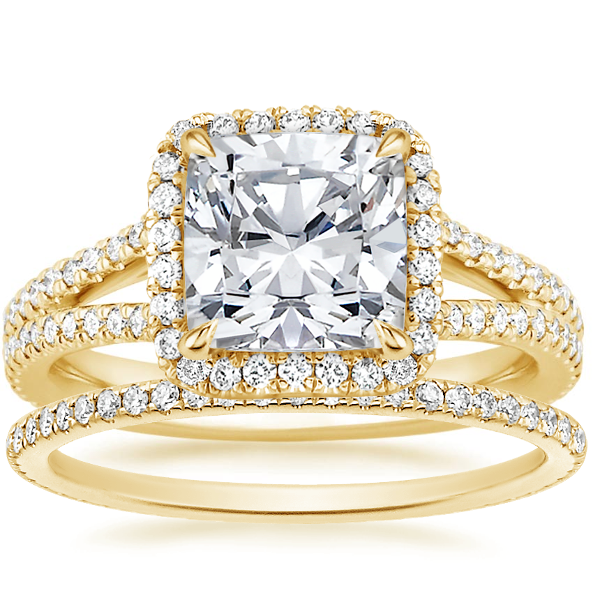 18K Yellow Gold Fortuna Diamond Ring (1/2 ct. tw.) with Whisper Eternity Diamond Ring (1/4 ct. tw.)