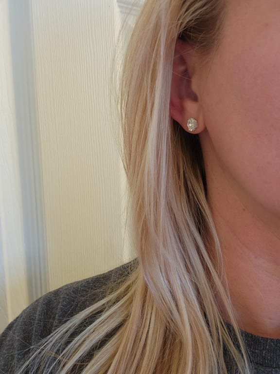 The earrings were exactly what I have been wanting. The size and shape match my ring exactly. The backs keep them in place without any issue. I could not be more excited and happy to wear them daily. ...Read More