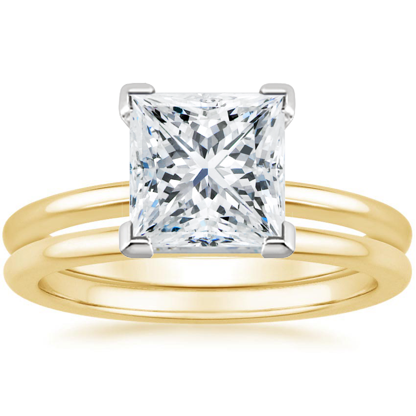 18K Yellow Gold Four-Prong Petite Comfort Fit Bridal Set with 1.29 Carat Princess Lab Grown Diamond