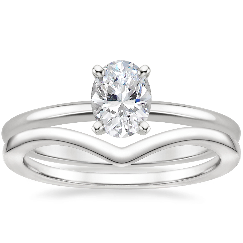 18K White Gold Four-Prong Petite Comfort Fit Ring with Chevron Ring