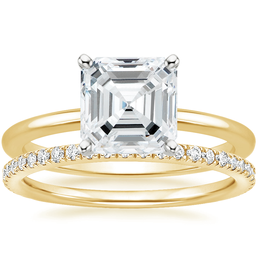 18K Yellow Gold Four-Prong Petite Comfort Fit Ring with Luxe Ballad Diamond Ring (1/4 ct. tw.)