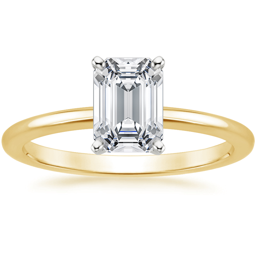 18K Yellow Gold Four-Prong Petite Comfort Fit Ring with Matte Hammered Petite Comfort Fit Wedding Ring with 0.3 Carat Emerald Diamond