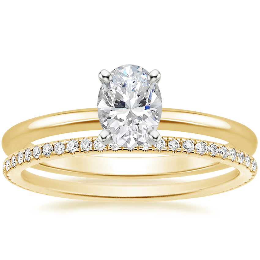 18K Yellow Gold Four-Prong Petite Comfort Fit Ring with Whisper Eternity Diamond Ring with 0.81 Carat Oval Diamond