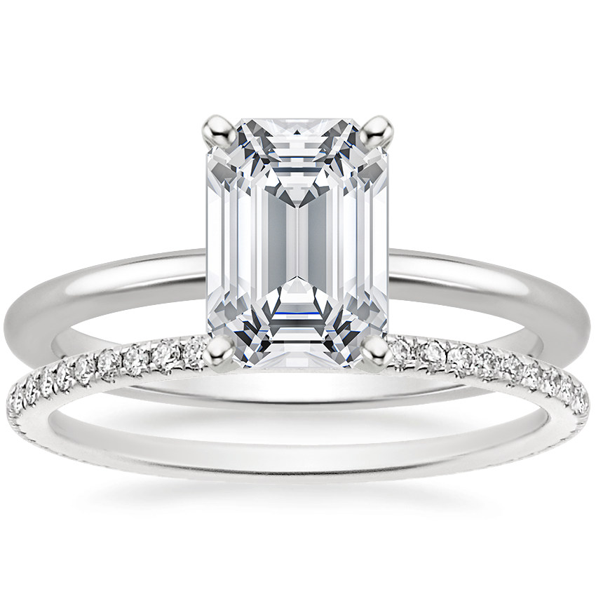 Platinum Four-Prong Petite Comfort Fit Ring with Whisper Eternity Diamond Ring