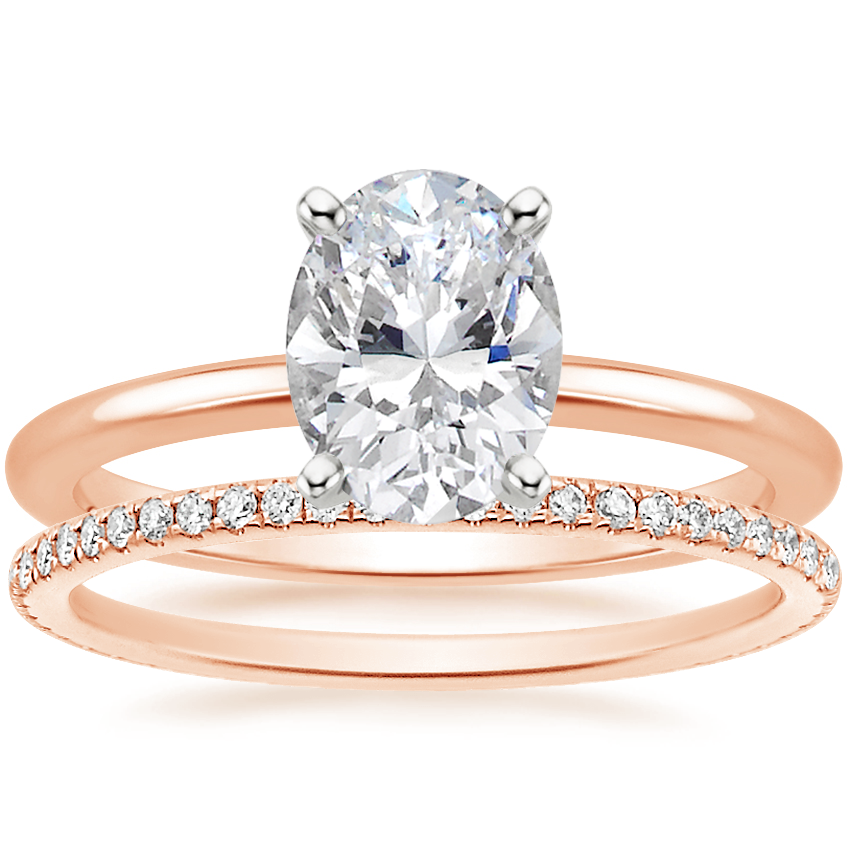 14K Rose Gold Four-Prong Petite Comfort Fit Ring with Whisper Eternity Diamond Ring with 1.41 Carat Oval Lab Grown Diamond