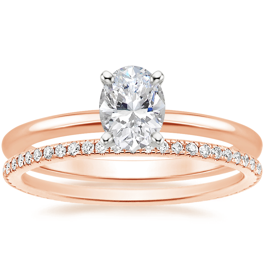 14K Rose Gold Four-Prong Petite Comfort Fit Ring with Whisper Eternity Diamond Ring with 0.81 Carat Oval Diamond