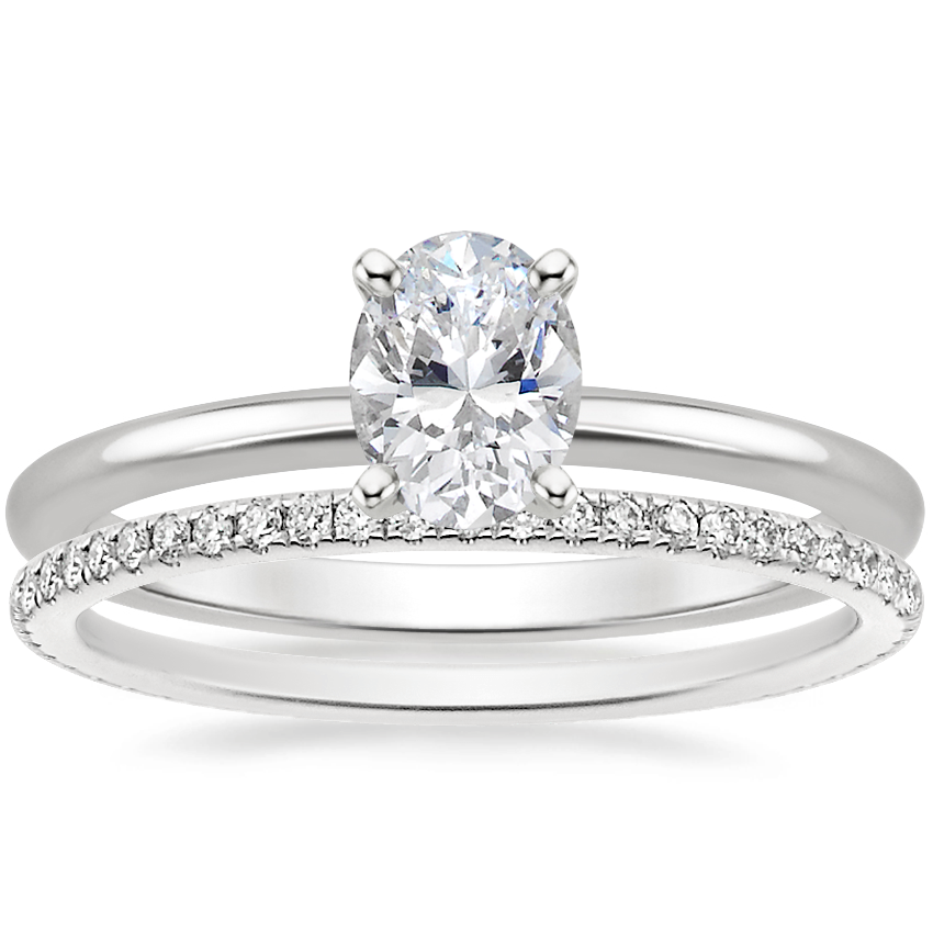 Four-Prong Petite Comfort Fit Ring with Whisper Eternity Diamond Ring in 18K White Gold