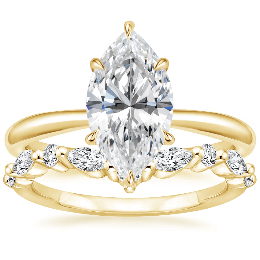 18K Yellow Gold Freesia Ring with Curved Versailles Diamond Ring with 1.99 Carat Marquise Lab Grown Diamond