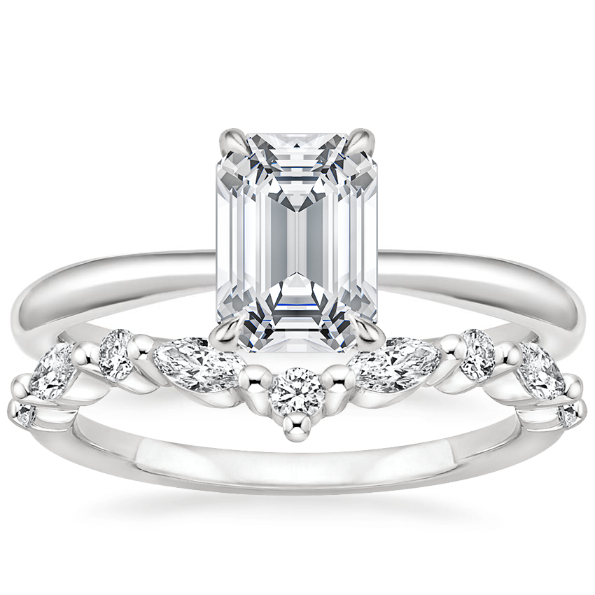 The gently tapering band of this engagement ring is perfectly complemented by a curved wedding ring, creating a what-dreams-are-made-of, timeless bridal set (3/8 total carat weight). ... Read More