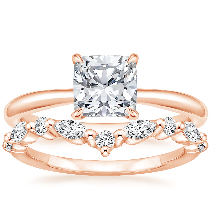 14K Rose Gold Freesia Ring with Curved Versailles Diamond Ring