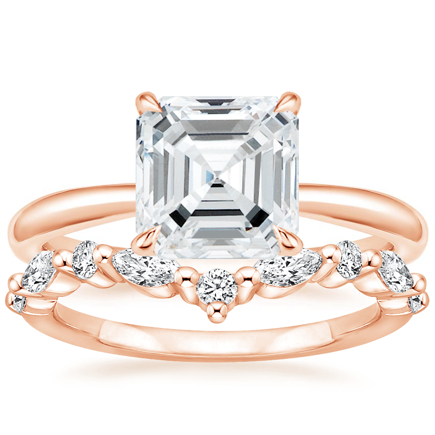14K Rose Gold Freesia Ring with Curved Versailles Diamond Ring