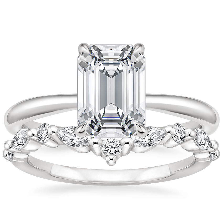 The gently tapering band of this engagement ring is perfectly complemented by a curved wedding ring, creating a what-dreams-are-made-of, timeless bridal set (3/8 total carat weight). ... Read More
