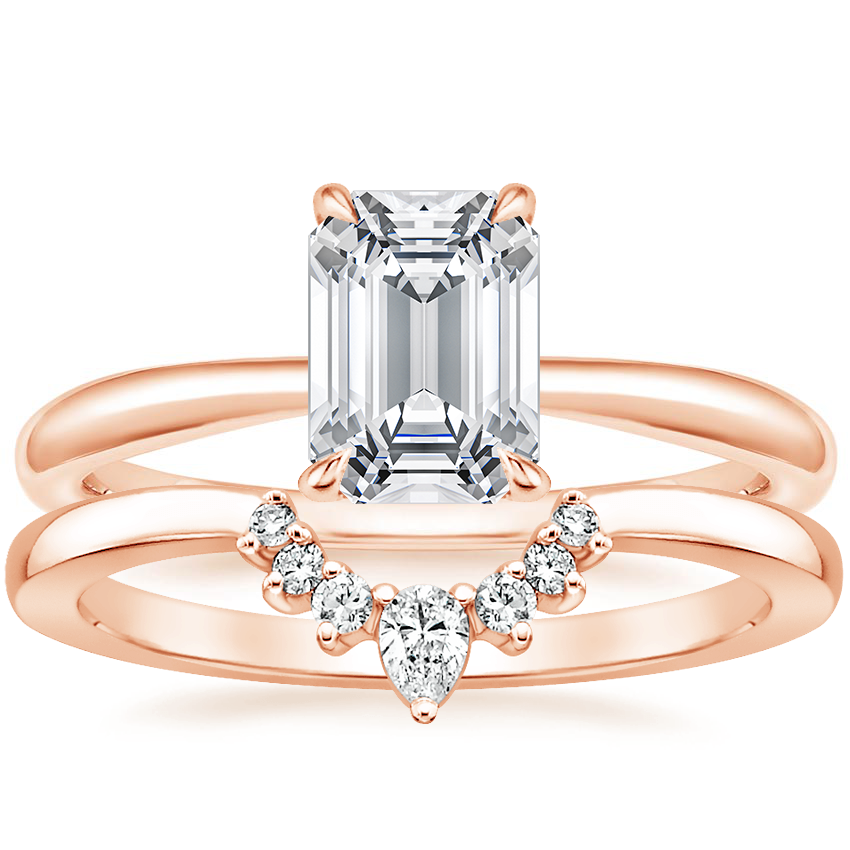 14K Rose Gold Freesia Ring with Lunette Diamond Ring