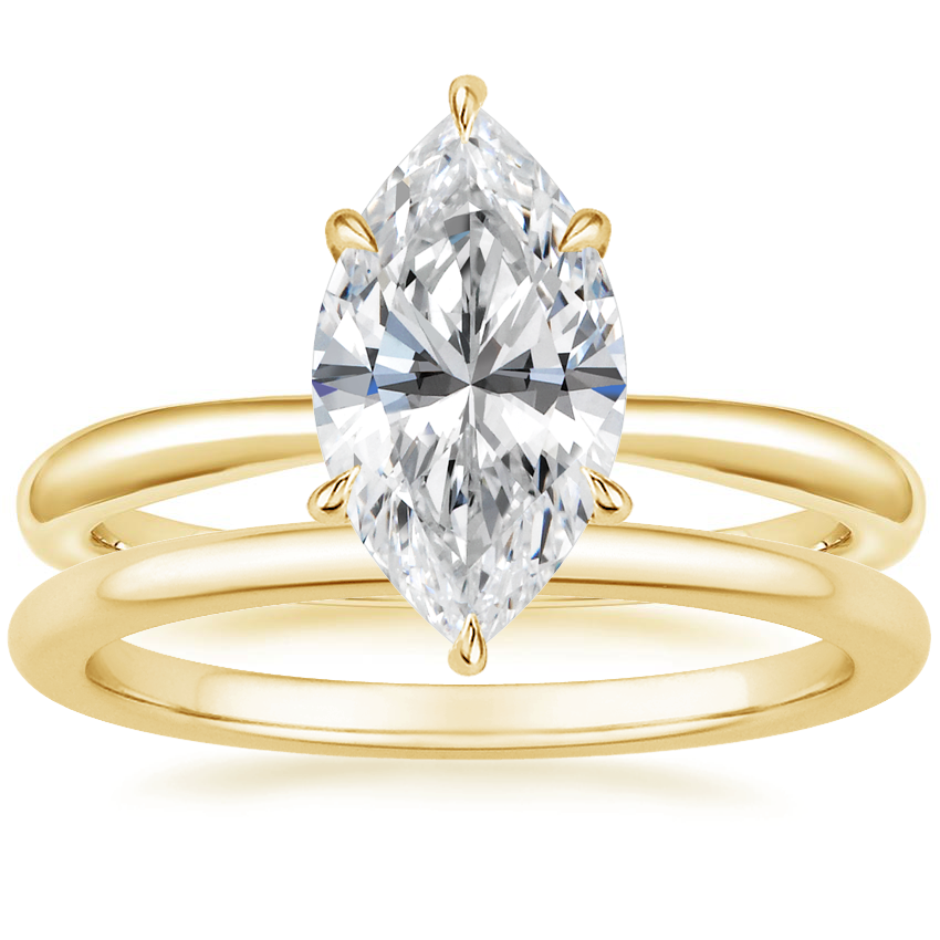 My fiance and I choose the 12x6mm Super Premium Marquise Moissanite to go with the Fressia 2mm solitaire ring. I don't care much about a real diamond and the Moissanite was much prettier than an actual diamond in my opinion. I paired my engagement ring with a 3mm low dome comfort fit wedding band.