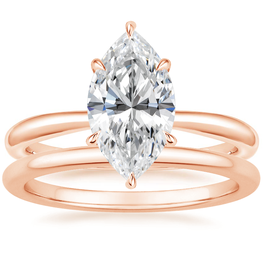 14K Rose Gold Freesia Ring with Petite Comfort Fit Wedding Ring