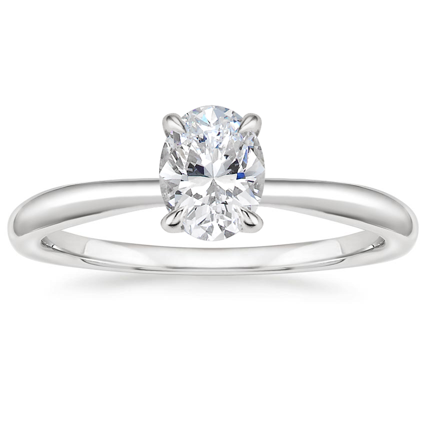 My partner and I picked out the 8x6 mm oval moissanite with this setting and it is PERFECT! I love the elegant band and especially that it tapers just slightly at the stone. The setting is gorgeous and the claw prongs are exactly what I wanted. This is the ring of my dreams and I love wearing it every day! I paired it with the Sia for my wedding band and they look gorgeous together. As an FYI, photos are on my size 6 finger.