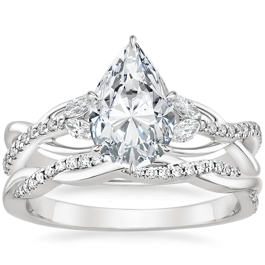18K White Gold Garland Diamond Ring with Petite Twisted Vine Diamond Ring (1/8 ct. tw.)
