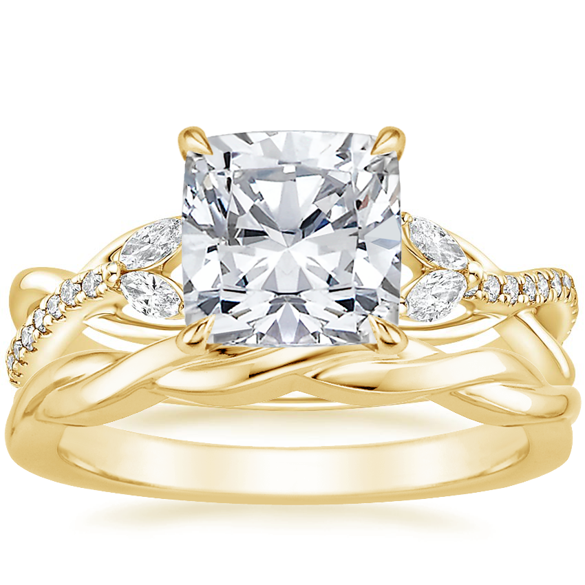 18K Yellow Gold Garland Diamond Ring with Twisted Vine Ring