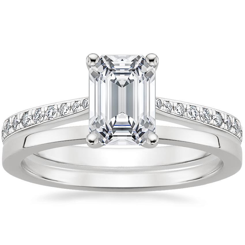18K White Gold Geneva Diamond Ring with Petite Quattro Wedding Ring