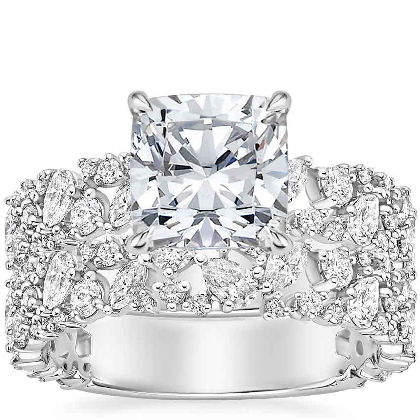 Platinum Glacé Diamond Ring (3/4 ct. tw.) with Glacé Diamond Ring (3/4 ct. tw.) with 7.28 Carat Cushion Diamond