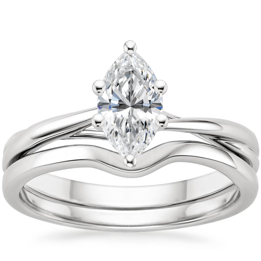 Ribbons of precious metal delicately entwine around the center gem in this artfully sculpted matched set. A beautifully contoured band curves gently along the engagement ring for a classically elegant look. ... Read More