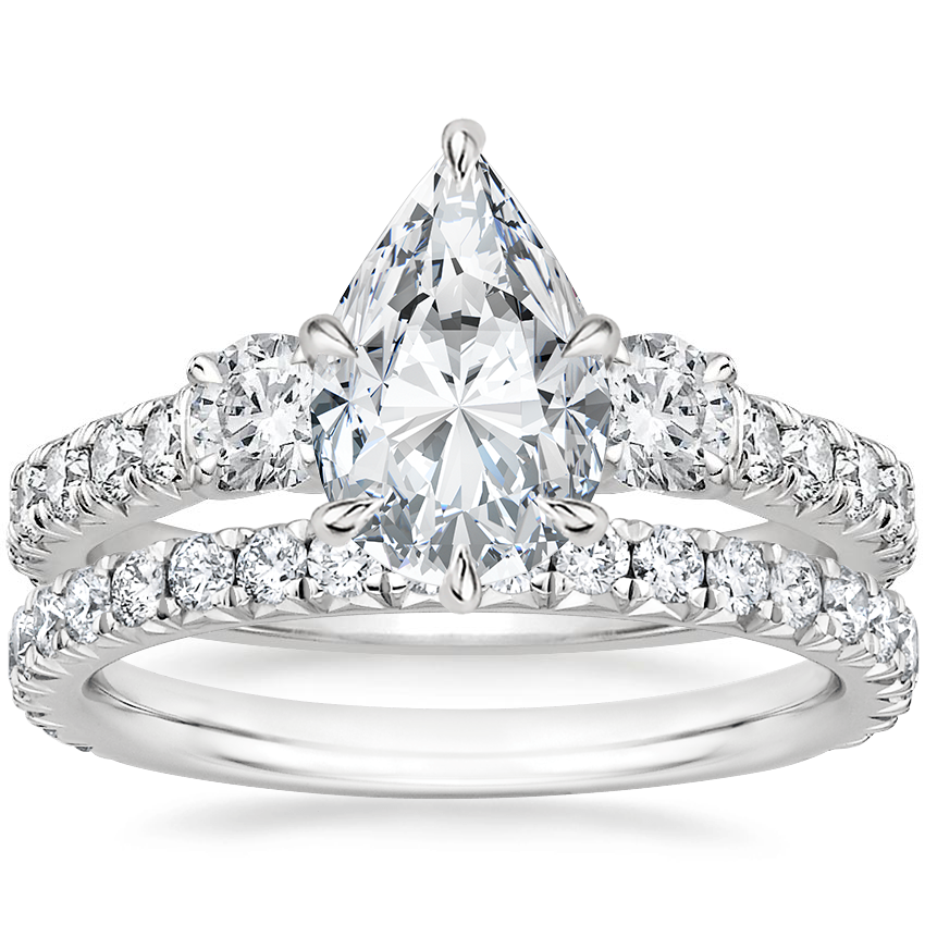 After searching far and wide for the perfect engagement ring, I finally found the one in the Three stone Gramercy Engagement Ring. The gorgeous pavé style pairs elegantly with the three stones in striking fashion where classic meets unique. While this is what I was looking for, its size in terms of width (~2.5mm) and carats (3/4th) is not to be understated. This might make it tougher to pair with a wedding band (i.e., finding the right complementary style/size), but this ring is absolutely worth the effort. We also loved how the side stones go down 3/4ths of the side, as they don't rub on hard surfaces when worn (desks, tables, etc.). My fiancé can't go anywhere without getting compliments from passersby. During my insurance appraisal, one of the most respected jewelers in metropolitan area said this engagement ring was one of the finest he's seen in his 30+ years in the business. "Expert craftsmanship" and "unusually high quality side stones" were other comments. Thank you BE for making this all possible.
