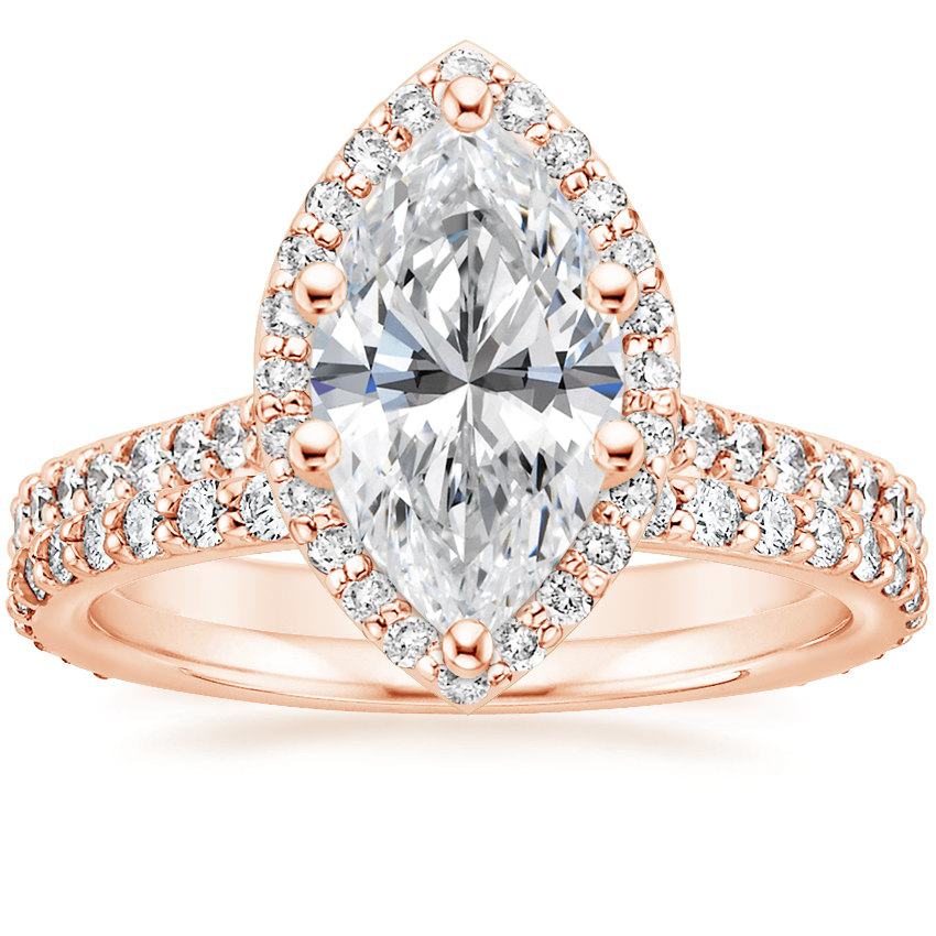 14K Rose Gold Halo Diamond Ring with Side Stones (1/3 ct. tw.) with Luxe Petite Shared Prong Diamond Ring (3/8 ct. tw.)