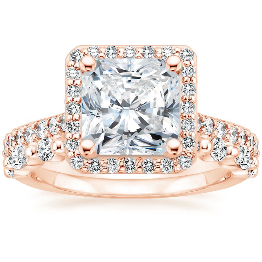 14K Rose Gold Halo Diamond Ring with Side Stones (1/3 ct. tw.) with Versailles Diamond Ring (3/8 ct. tw.)