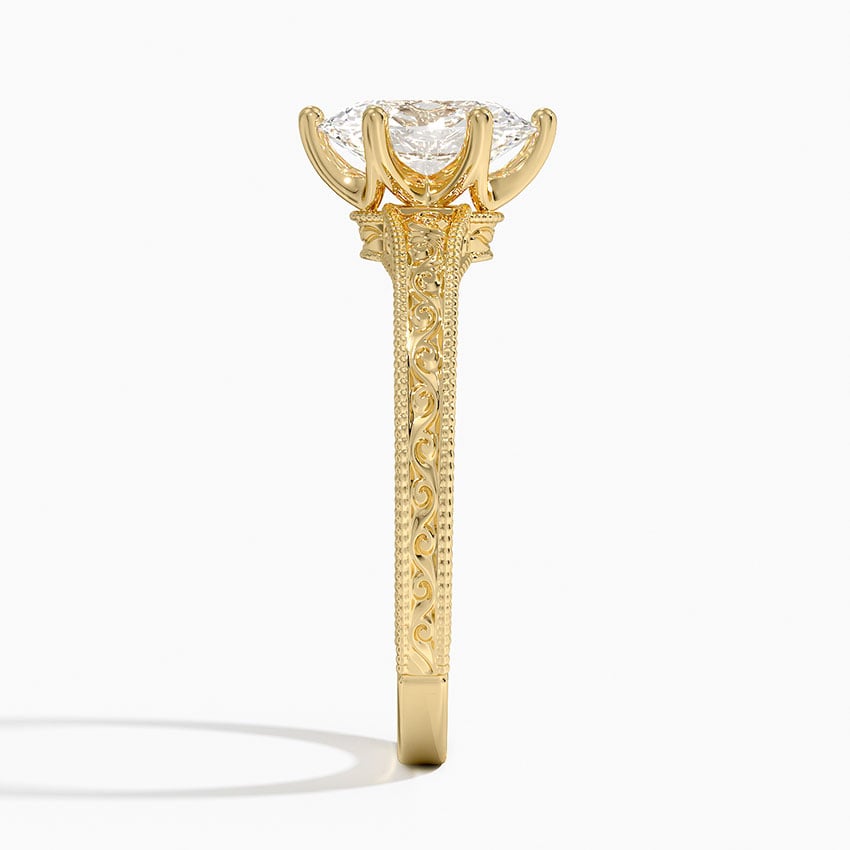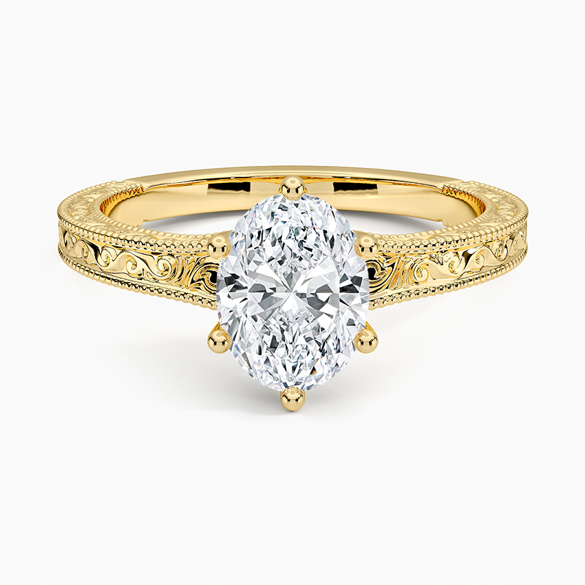 18K Yellow Gold Hudson Engraved Ring with 1.24 Carat Oval Lab Grown Diamond