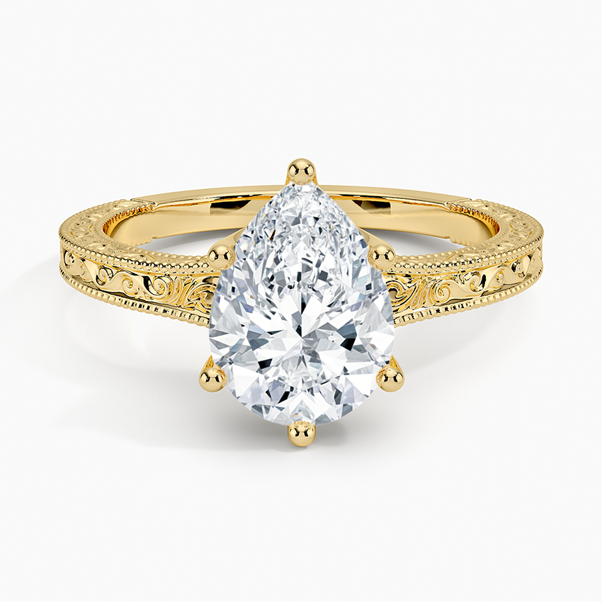 18K Yellow Gold Hudson Engraved Ring with 2.01 Carat Pear Diamond