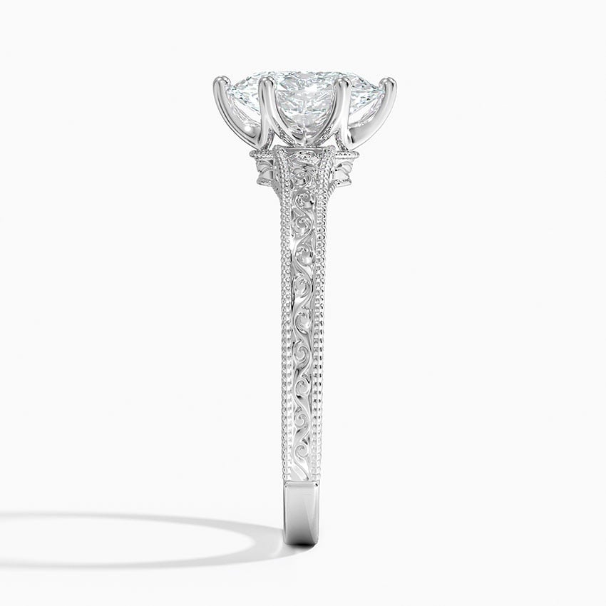 My fiance wanted something with a vintage look, and classic at the same time. This ring was even more beautiful in person and she loves it. Ever since they day she got it we both still smile when we see it. She sees a lot of different people each day at work and always gets compliments. The filigree and design details are awesome. The gold version was our favorite!