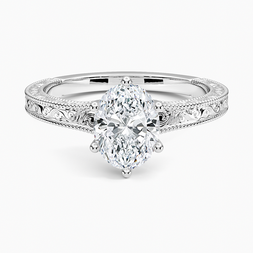 Platinum Hudson Engraved Ring with 1.24 Carat Oval Lab Grown Diamond