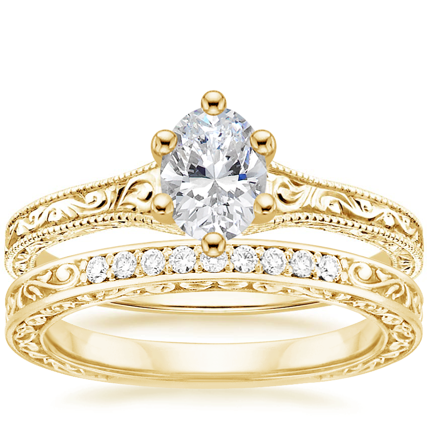 18K Yellow Gold Hudson Ring with Delicate Antique Scroll Diamond Ring (1/15 ct. tw.)