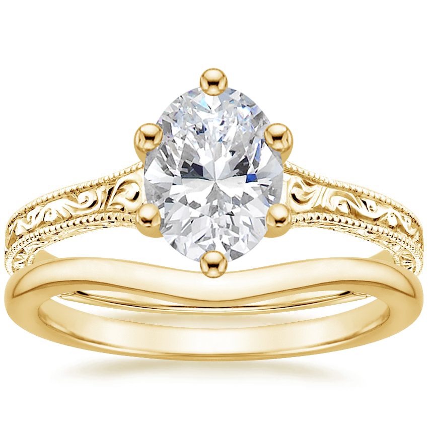 18K Yellow Gold Hudson Ring with Petite Curved Wedding Ring
