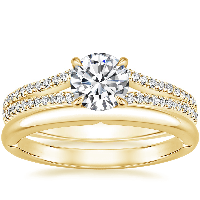 18K Yellow Gold Icon Diamond Ring with Heritage Wedding Ring