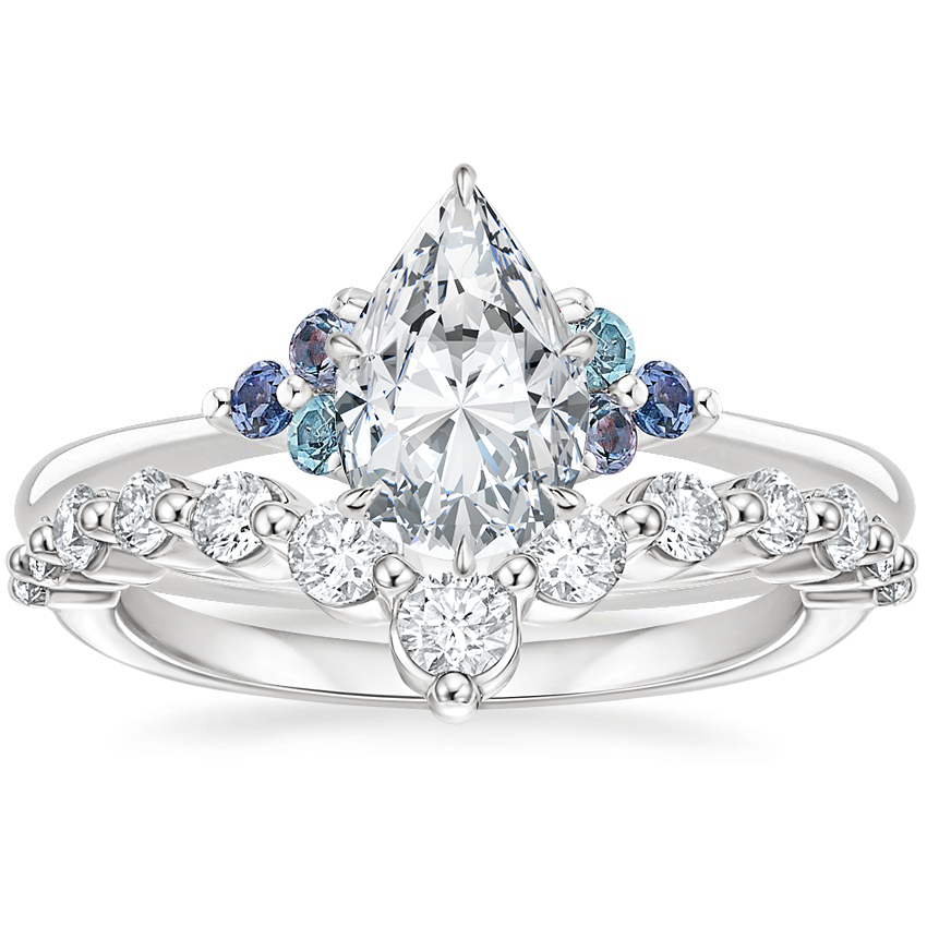 18K White Gold Indigo Melody Diamond Ring with Tapered Milan Diamond Ring