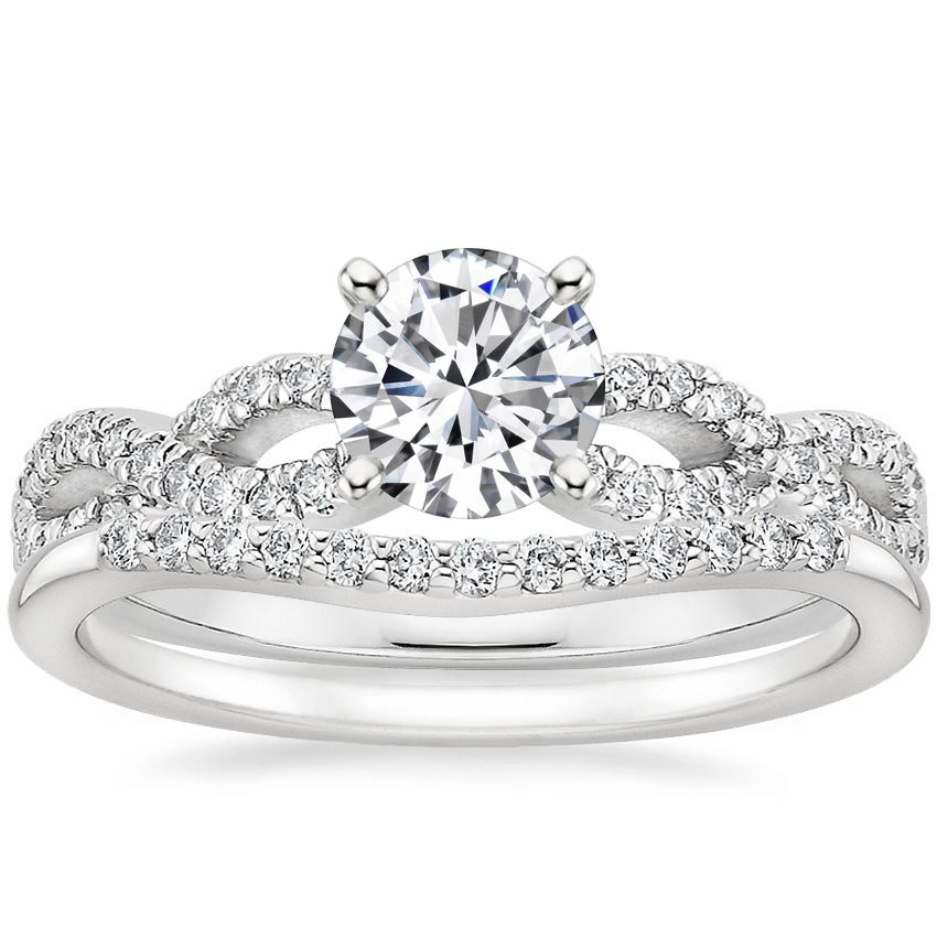 18K White Gold Infinity Diamond Ring with Petite Curved Diamond Ring (1/10 ct. tw.)