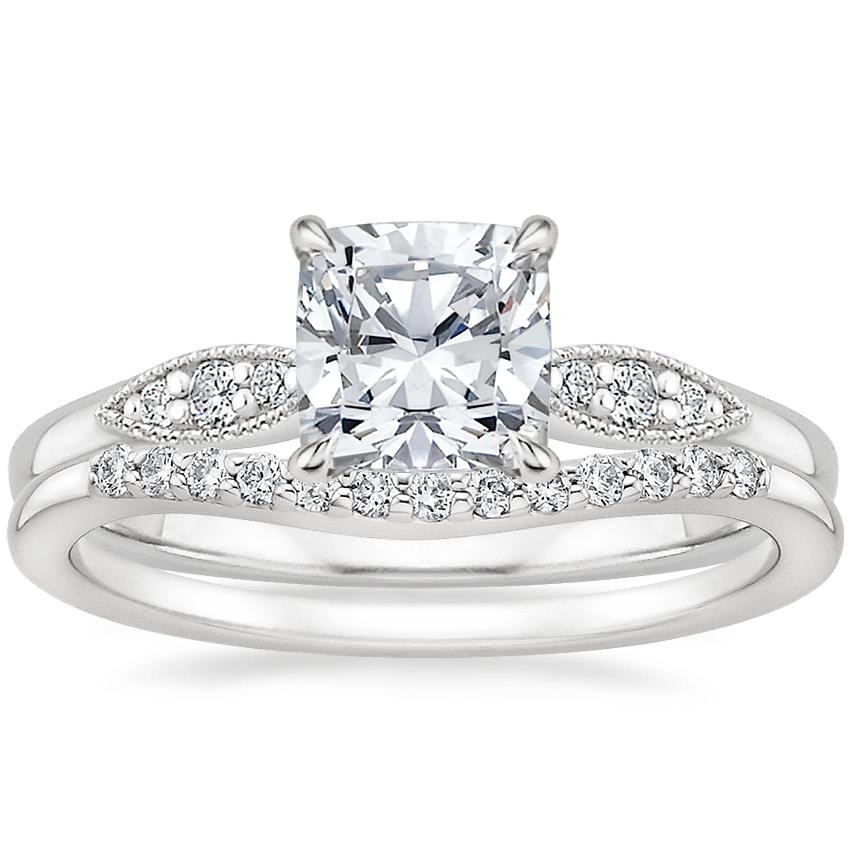 Platinum Isadora Diamond Ring with Petite Curved Diamond Ring