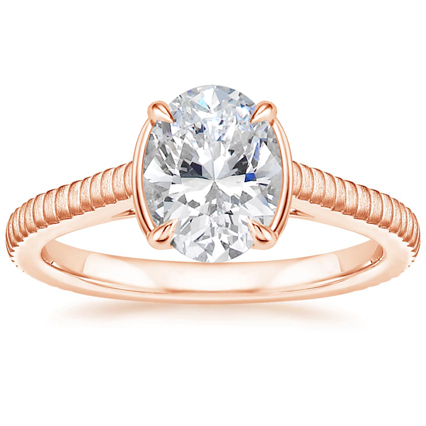 14K Rose Gold Jade Trau Satin Esthética Solitaire Ring with Satin Petite Comfort Fit Wedding Ring