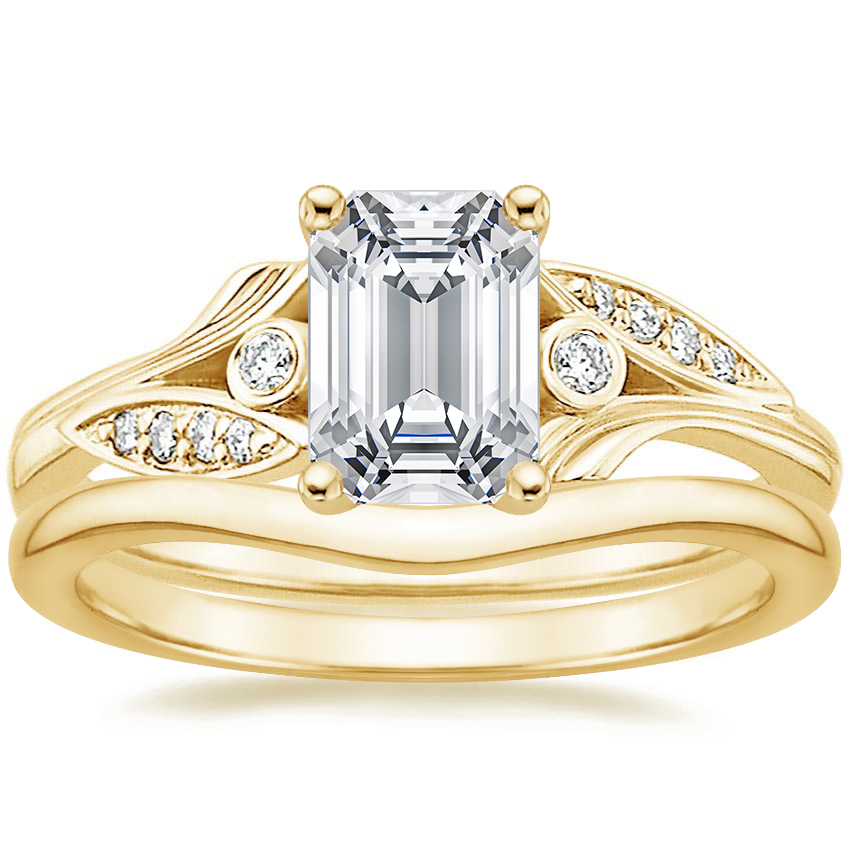 18K Yellow Gold Jasmine Diamond Ring with Petite Curved Wedding Ring