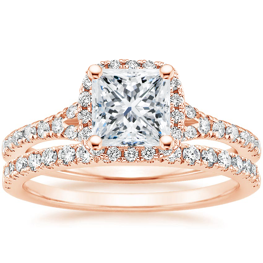 14K Rose Gold Joy Diamond Ring (1/3 ct. tw.) with Bliss Diamond Ring (1/5 ct. tw.) with 0.75 Carat Princess Diamond