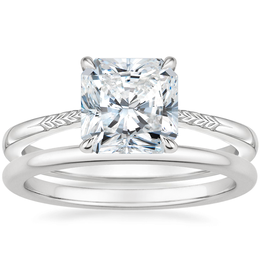 Platinum Laurel Engraved Ring with Petite Comfort Fit Wedding Ring