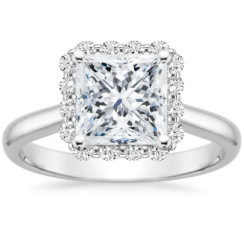 My husband purchased this setting with an emerald cut diamond as my gift for our 12th wedding anniversary. It was incredibly beautiful! The halo provides a sizeable frame of sparkles around the flash of the emerald cut diamond. I love that it's unique, and yet classic at the same time.