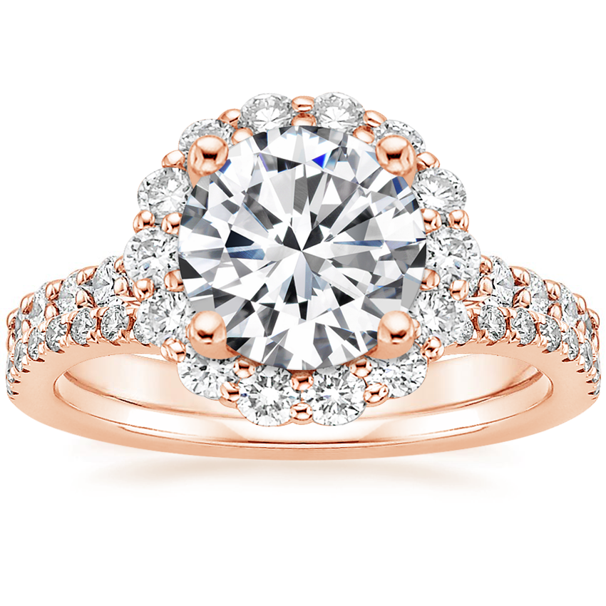 14K Rose Gold Lotus Flower Diamond Ring with Side Stones (3/4 ct. tw.) with Flair Diamond Ring (1/6 ct. tw.)