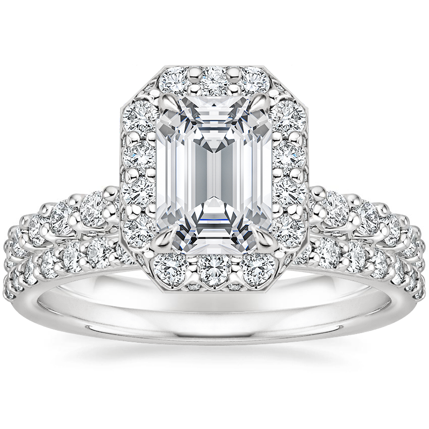 18K White Gold Lucinda Diamond Ring (2/3 ct. tw.) with Petite Shared Prong Diamond Ring (1/4 ct. tw.)