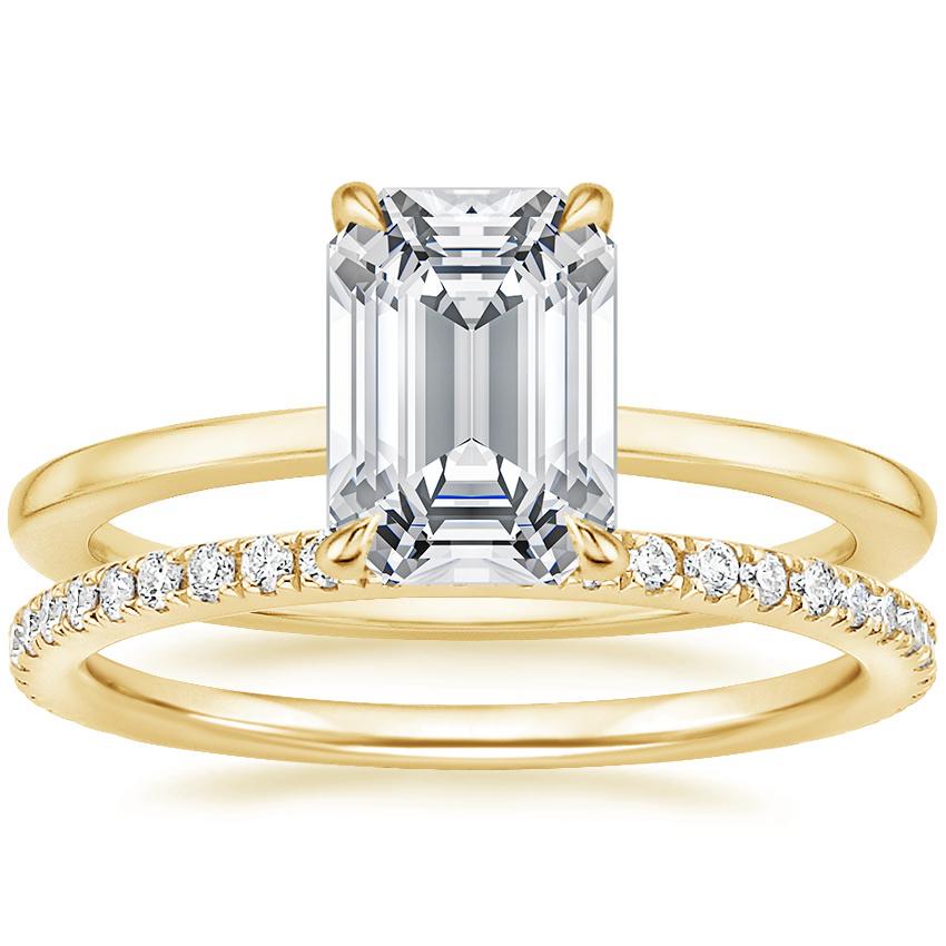 18K Yellow Gold Lumiere Lab Diamond Ring with Luxe Ballad Diamond Ring (1/4 ct. tw.) with 3.01 Carat Emerald Lab Grown Diamond