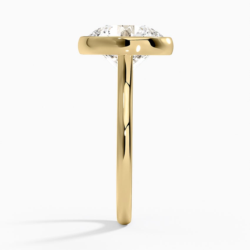 This beautiful, modern ring features a bezel-set center gem with a sleek band for a contemporary look. The elevated bezel allows for maximum light play and accommodates a variety of wedding band styles to tuck underneath.
